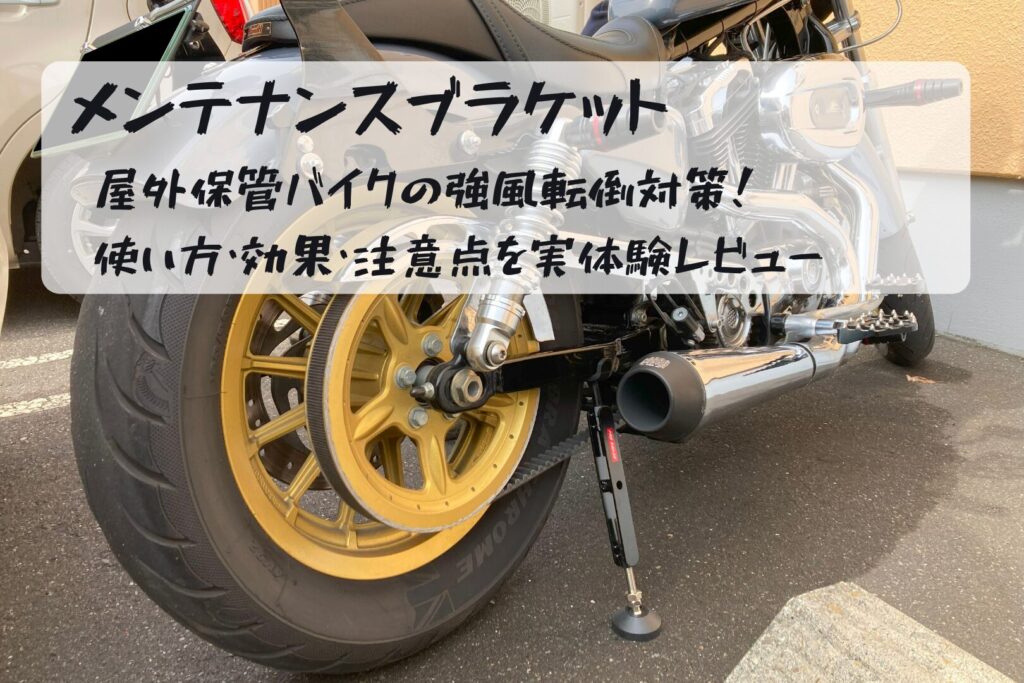 屋外保管のバイクで気になる強風による転倒対策として、メンテナンスブラケット(補助スタンド)を実際に使用してレビュー。使い方や効果、注意点、他の転倒防止対策との違いも体験ベースで解説します。 -