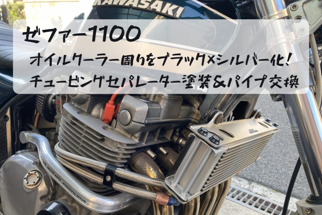 【ゼファー1100】オイルクーラー周りをブラック×シルバー化!チュービングセパレーター塗装&パイプ交換