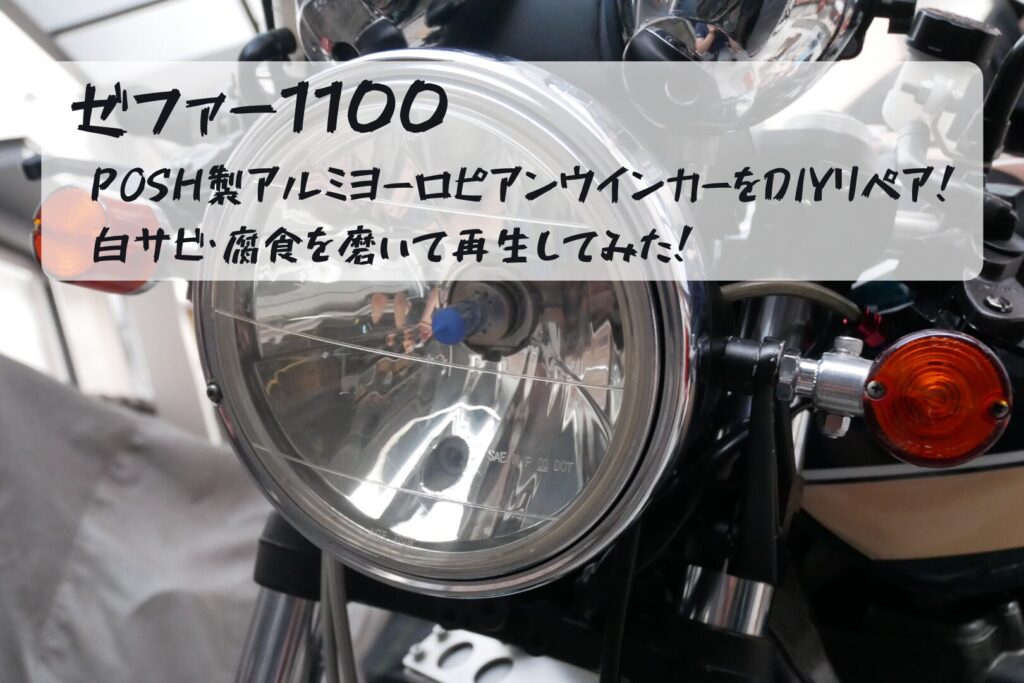 ゼファー1100に装着しているPOSH製アルミヨーロピアンウインカーをDIYでリペア。白サビや腐食の状態、磨き工程、使用した道具、仕上がりの変化まで実体験をもとに解説します。 -