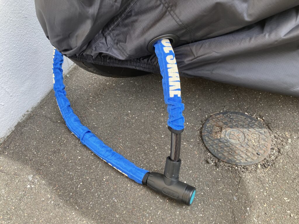 また、地球ロックできる環境であれば、固定物にチェーンを通すことで防犯性能が大幅に向上します。