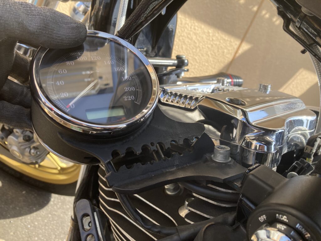 ハーネスを外したら、あとはメーター本体とステーを分離すれば完了です。