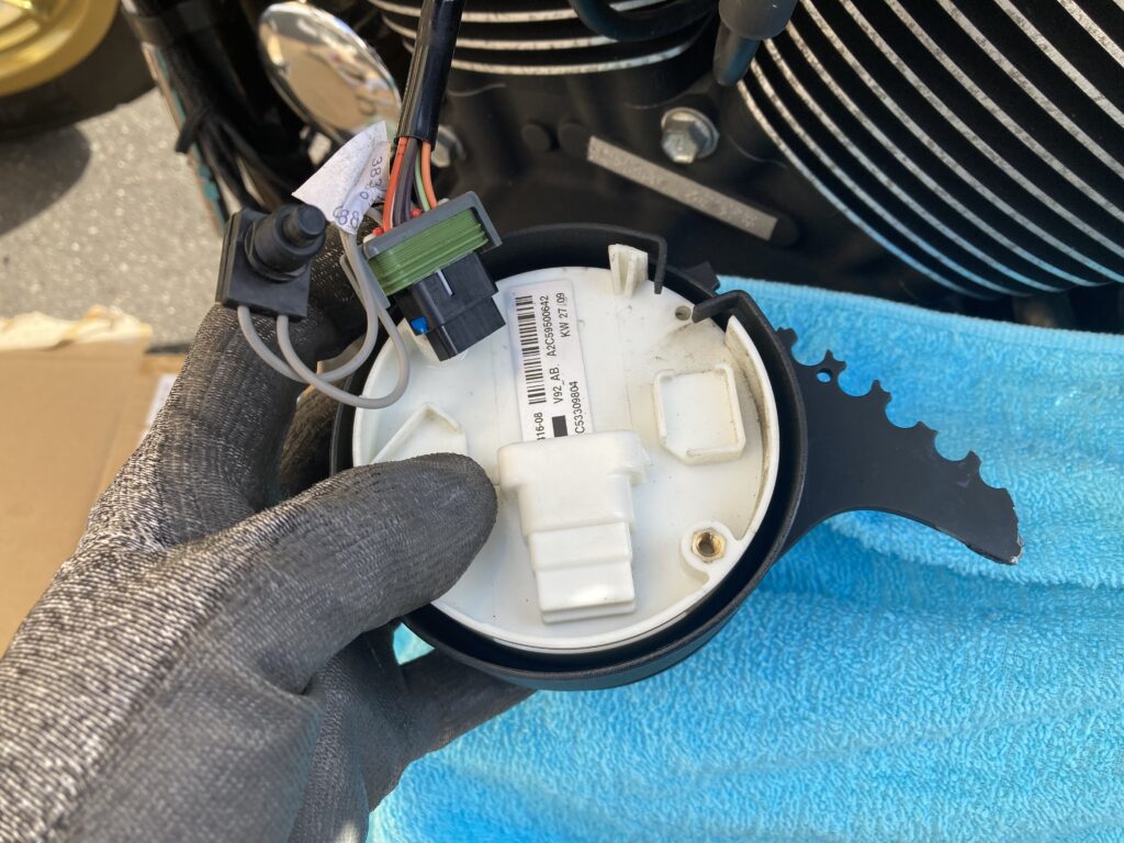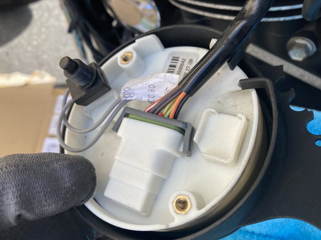 3️⃣ カバーとパッキンを外した後、ハーネスのコネクターが見えるので取り外します。