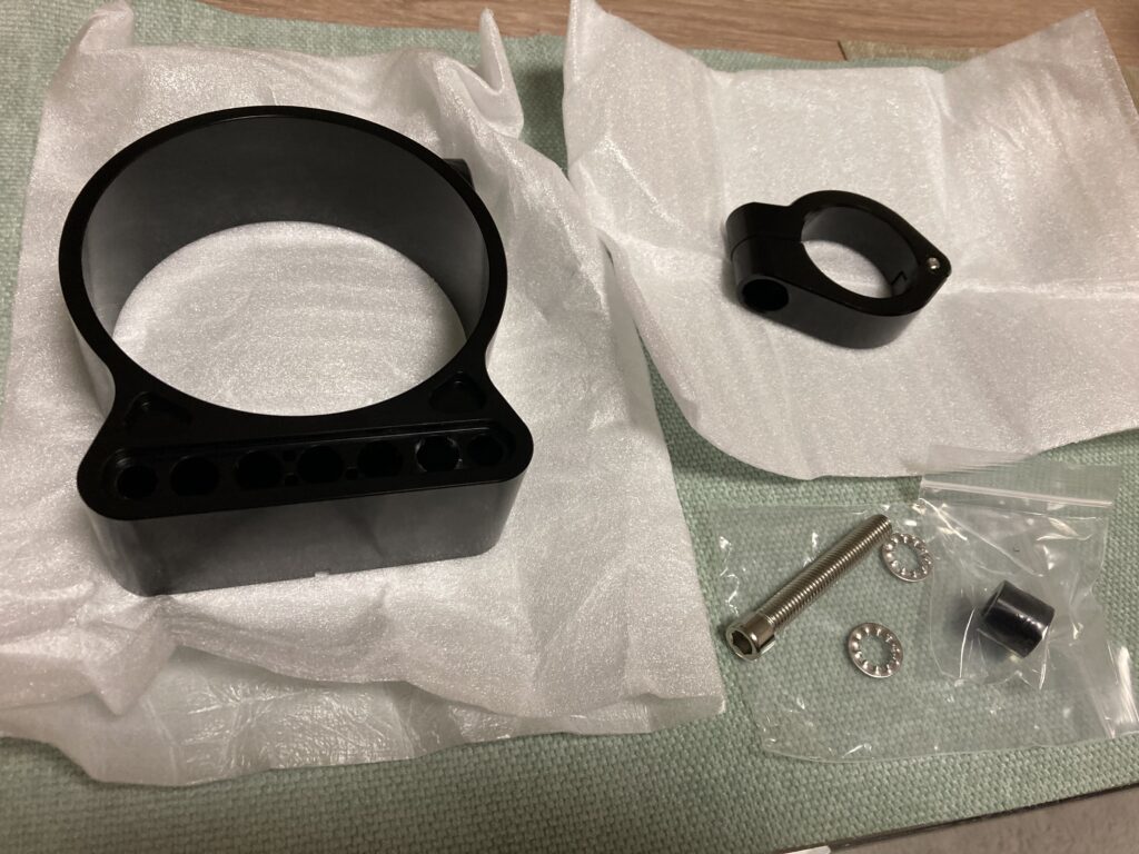 選んだのは、フロントフォークに取り付けるタイプのメーターステーです。