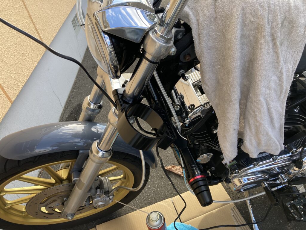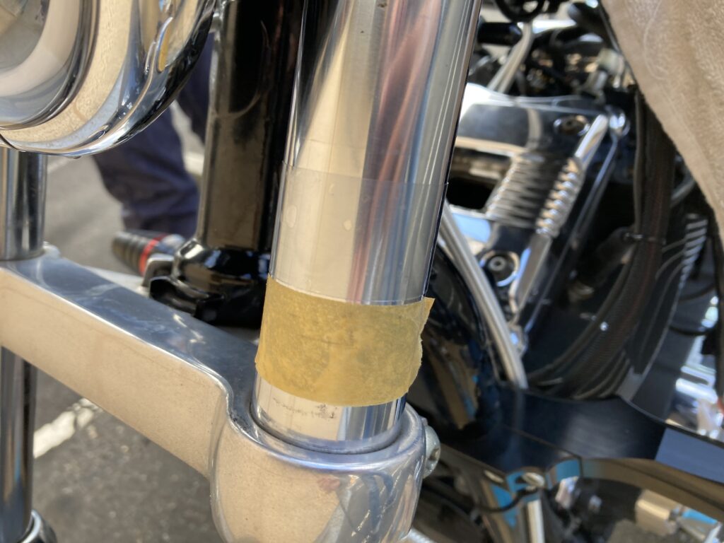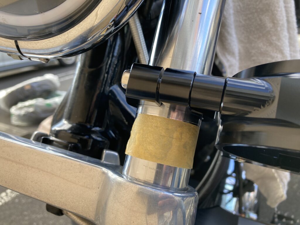取り付け前に、フロントフォークへの傷防止も行いました。