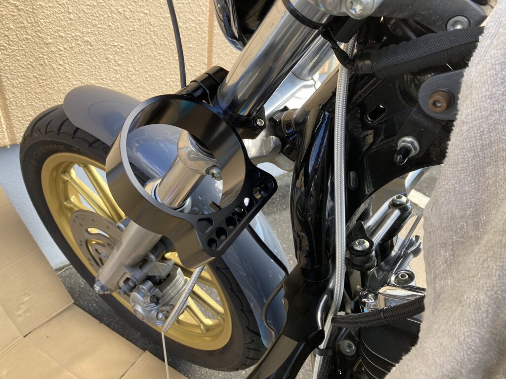 今回は暫定対応のため、「エンジン横取り付け」から一時的にフロントフォーク取り付けへ変更しました。