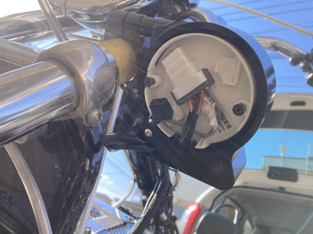 ハーネスコネクターを差し込んだあと、キーをONにしてメーターの通電チェックです。
