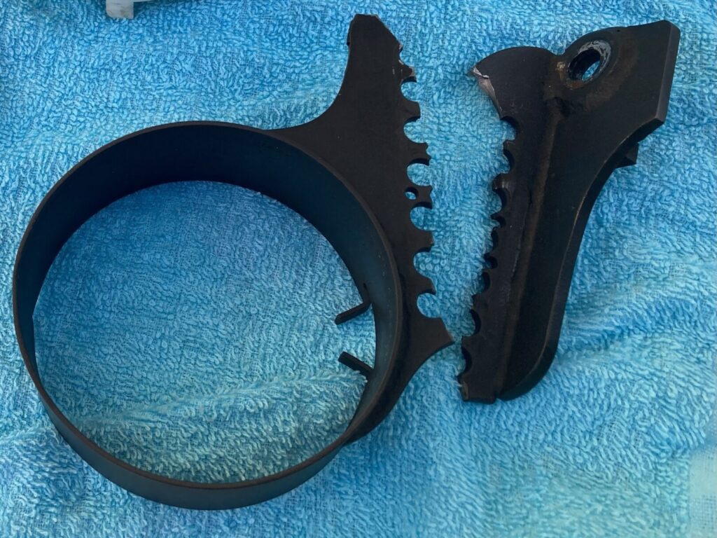 幸い折れた部分の破片はすべて残っているので、溶接補修+補強プレートを入れて再利用できる見込みです。