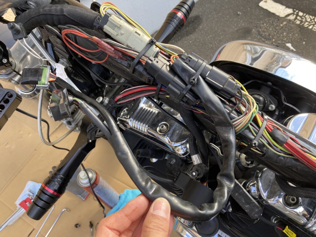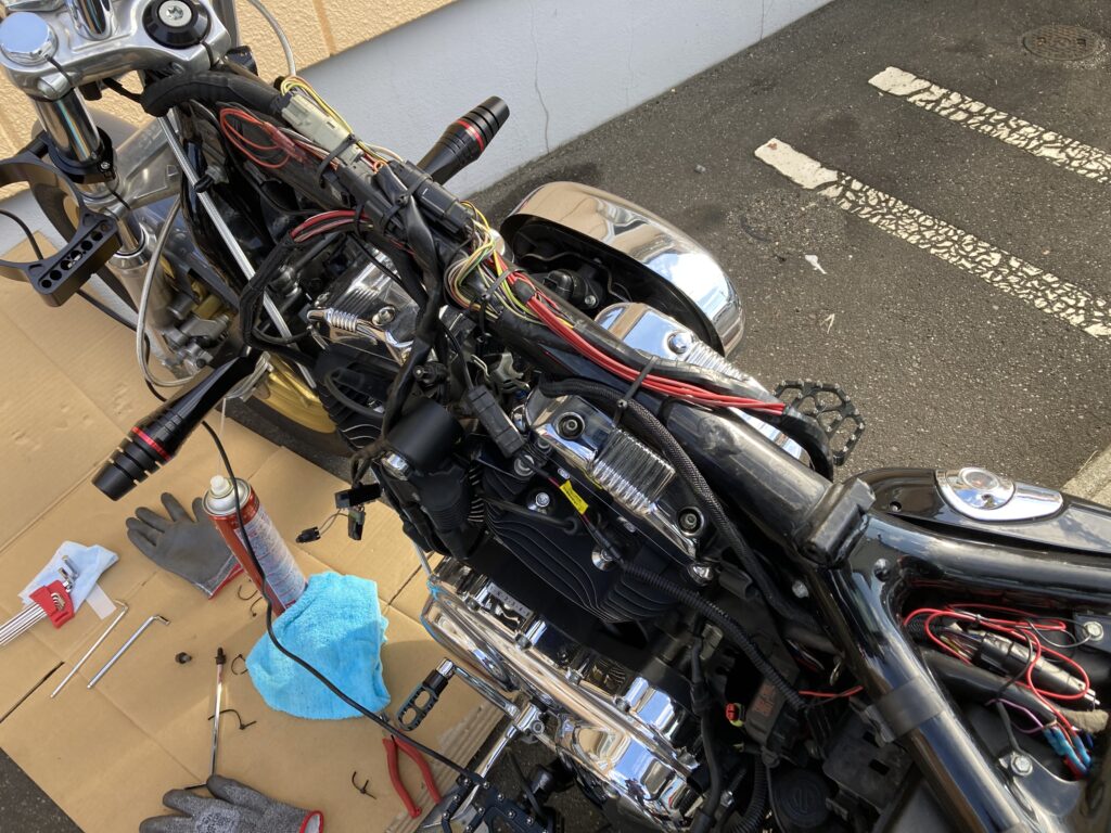 ケーブルが引っ張られたままだと断線やコネクターの緩みにつながるため、タンクを一度外して作業しました。