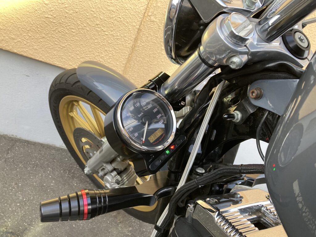 やはり、エンジン横に配置されたスピードメーターはスポーツスターらしさの象徴です。