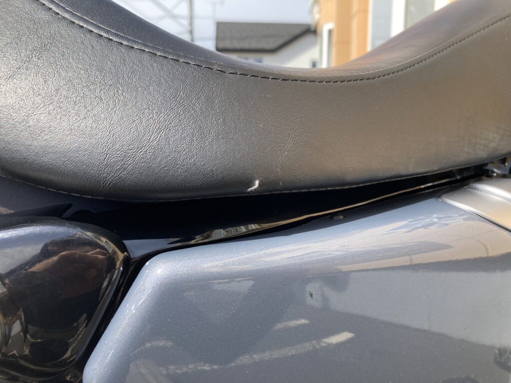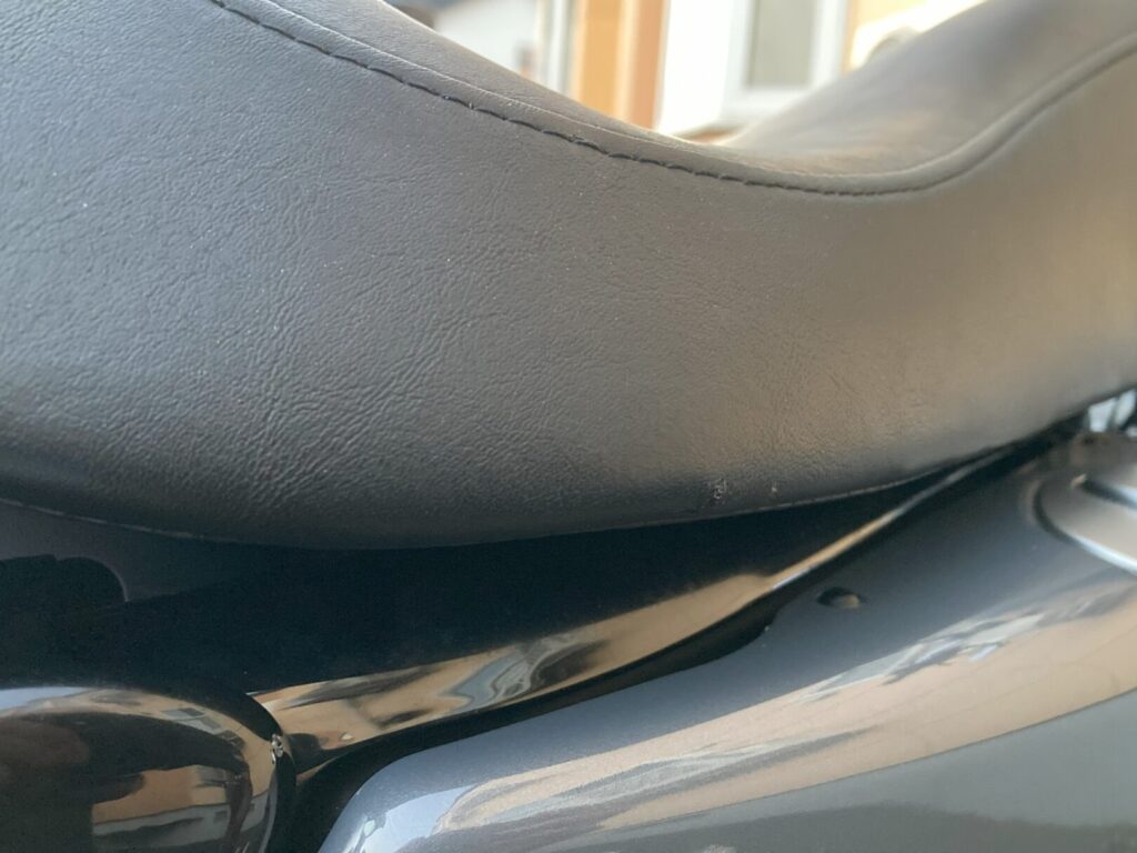 筆者のXL1200Lでも、シングルシート表面に小さな破れが発生していました。