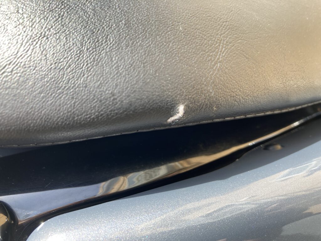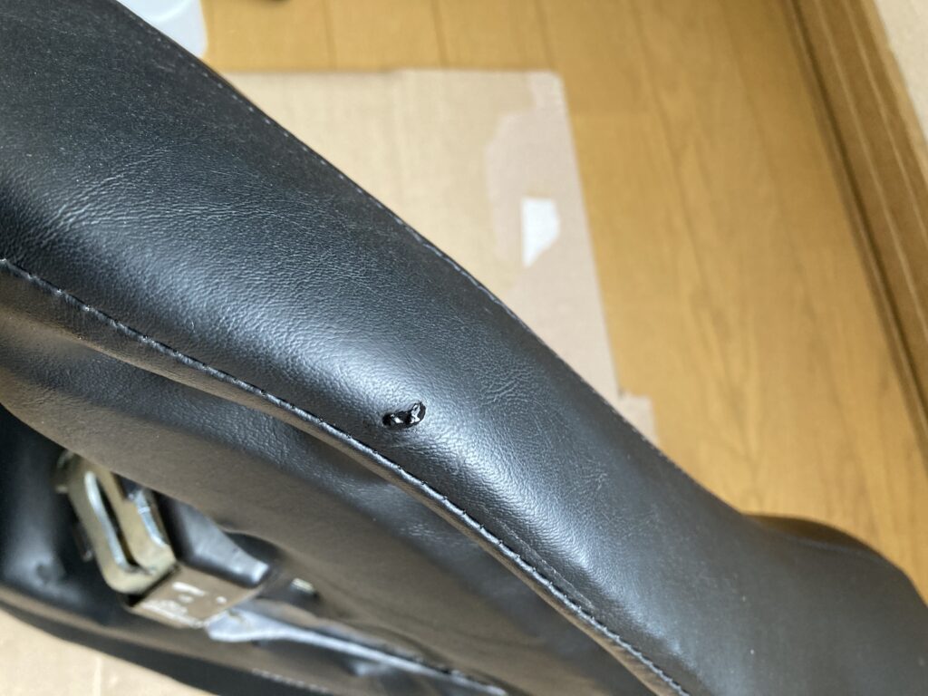 バイクシートにできた小さな破れ。
