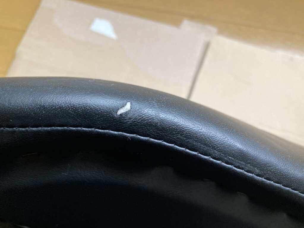 破れは座面の側面寄りにできていました。