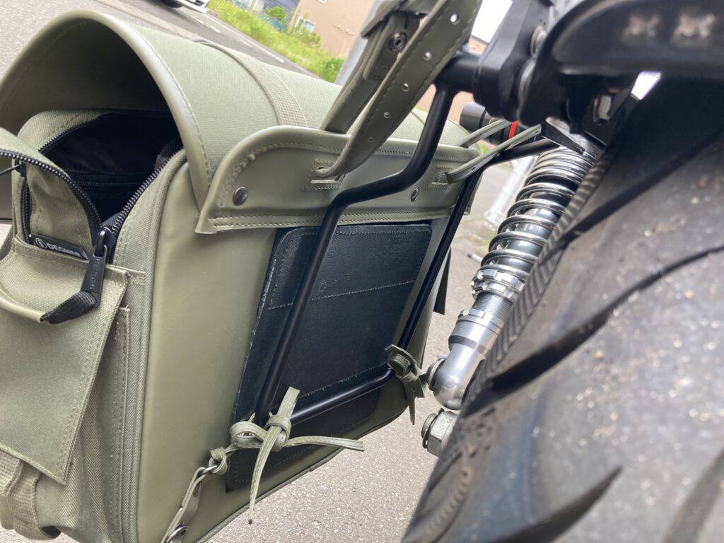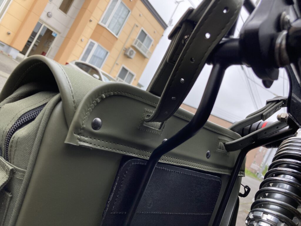このバッグガードがあることで、走行中の振動や揺れによるダメージを軽減できるのがポイントです。実際に使ってみて、バッグがサポートに直接当たらない安心感は大きいと感じました。