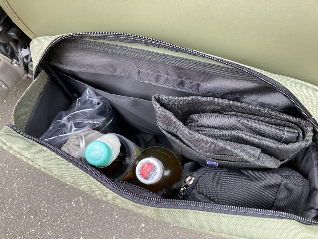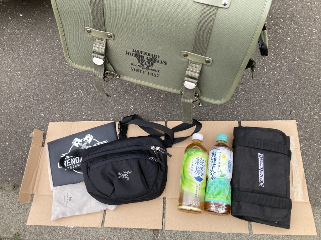 見た目を大きく崩さず、日帰り〜軽めのツーリングに必要な荷物を無理なく積める構成でした。