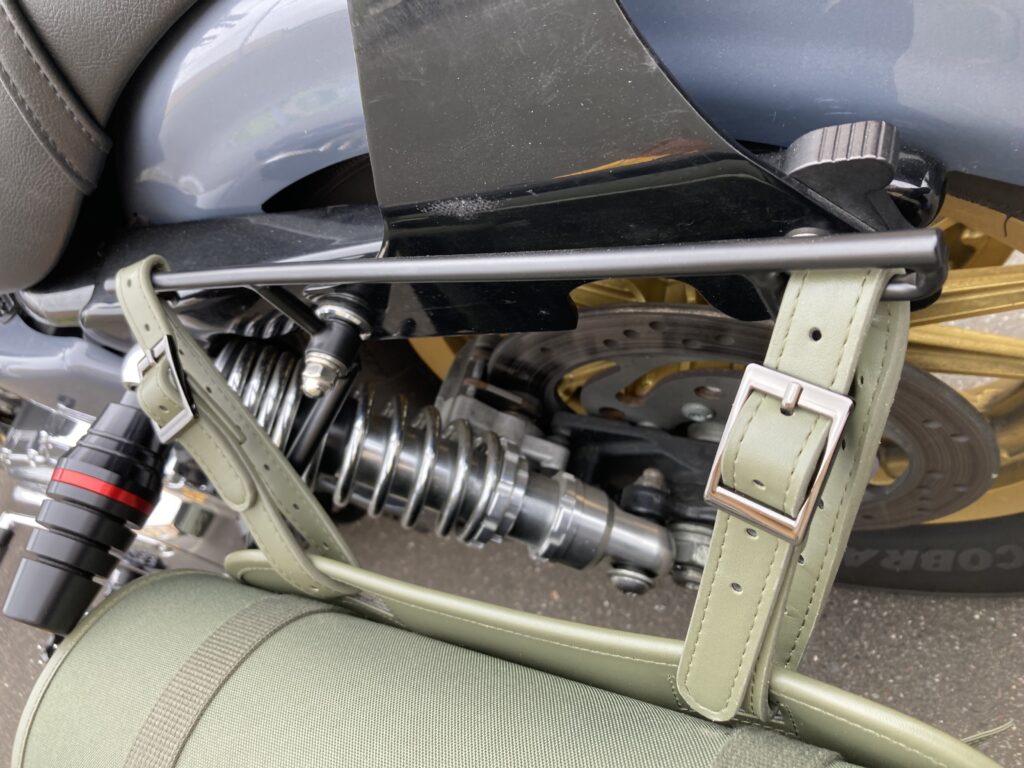 見た目もレザー調で車体に馴染みやすく、付けっぱなしにしても違和感が出にくいのも好印象でした。