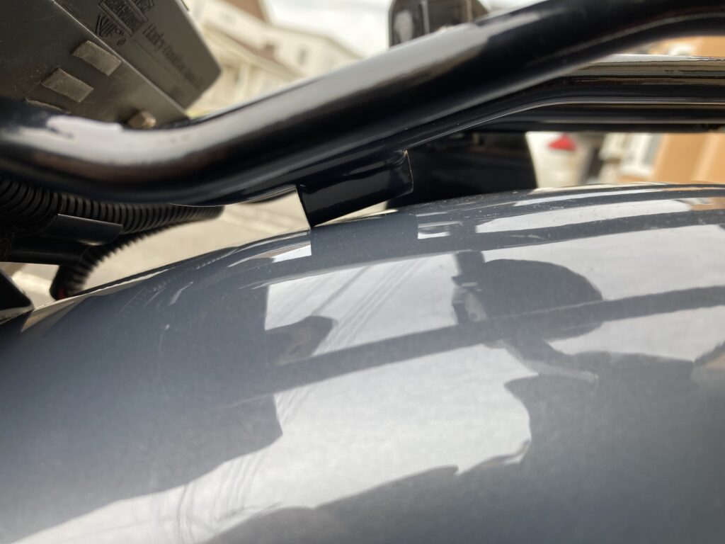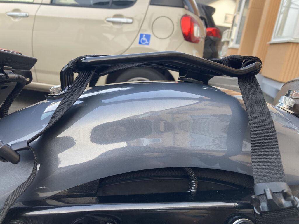 スポーツスターシリーズはデザイン性を優先した設計のため、リアフェンダーは短く、荷掛けポイントも限定的です。