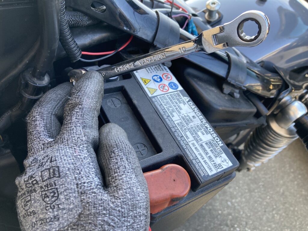 ✅ タンクを外す前に、バッテリーのマイナス端子を外す。