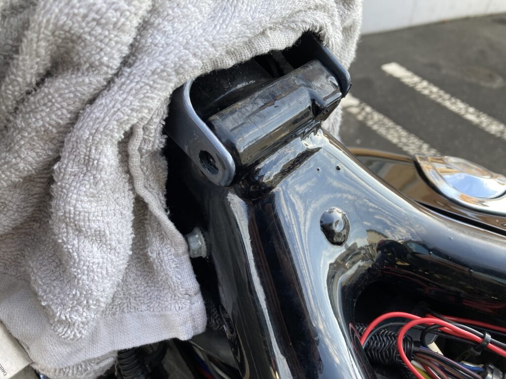 あらかじめ、フレームの上やタンク周辺に厚手のタオルやフェンダーカバーを敷いて保護しておくのがおすすめです。