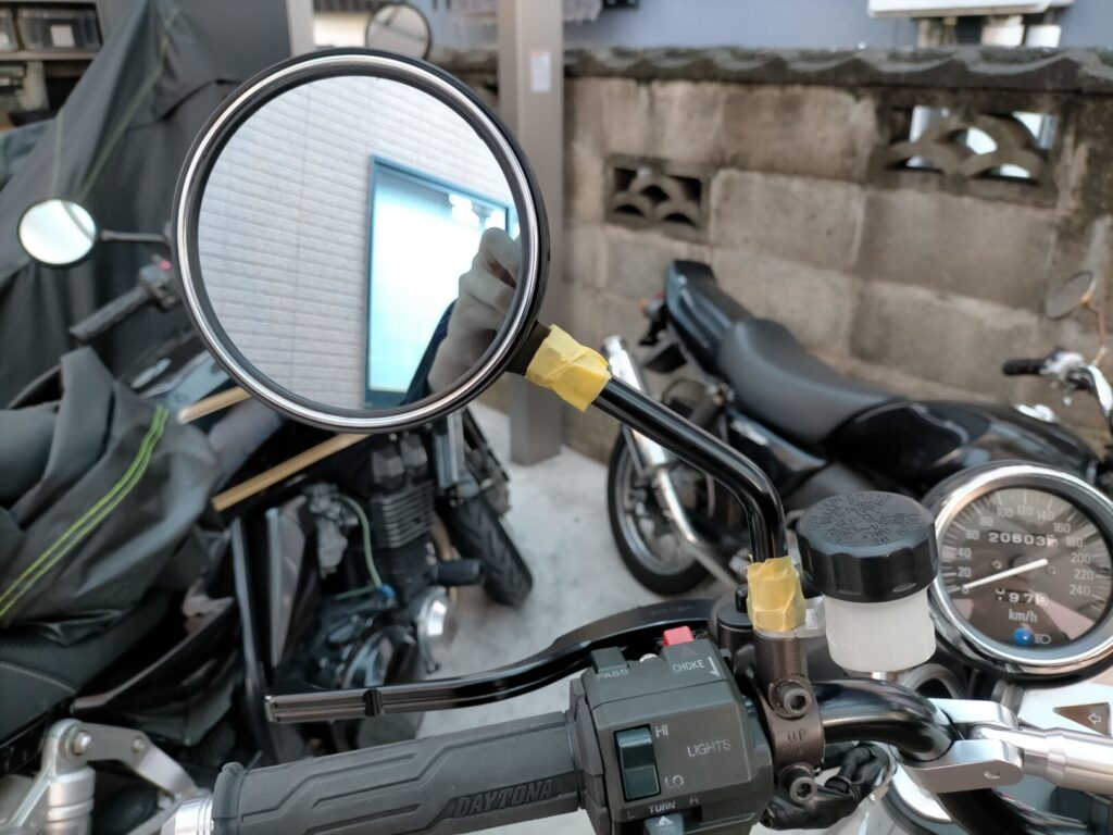 ゼファー1100に取り付けていたZ2タイプのブラックミラーは、長年の使用により少しずつ劣化が進行…。