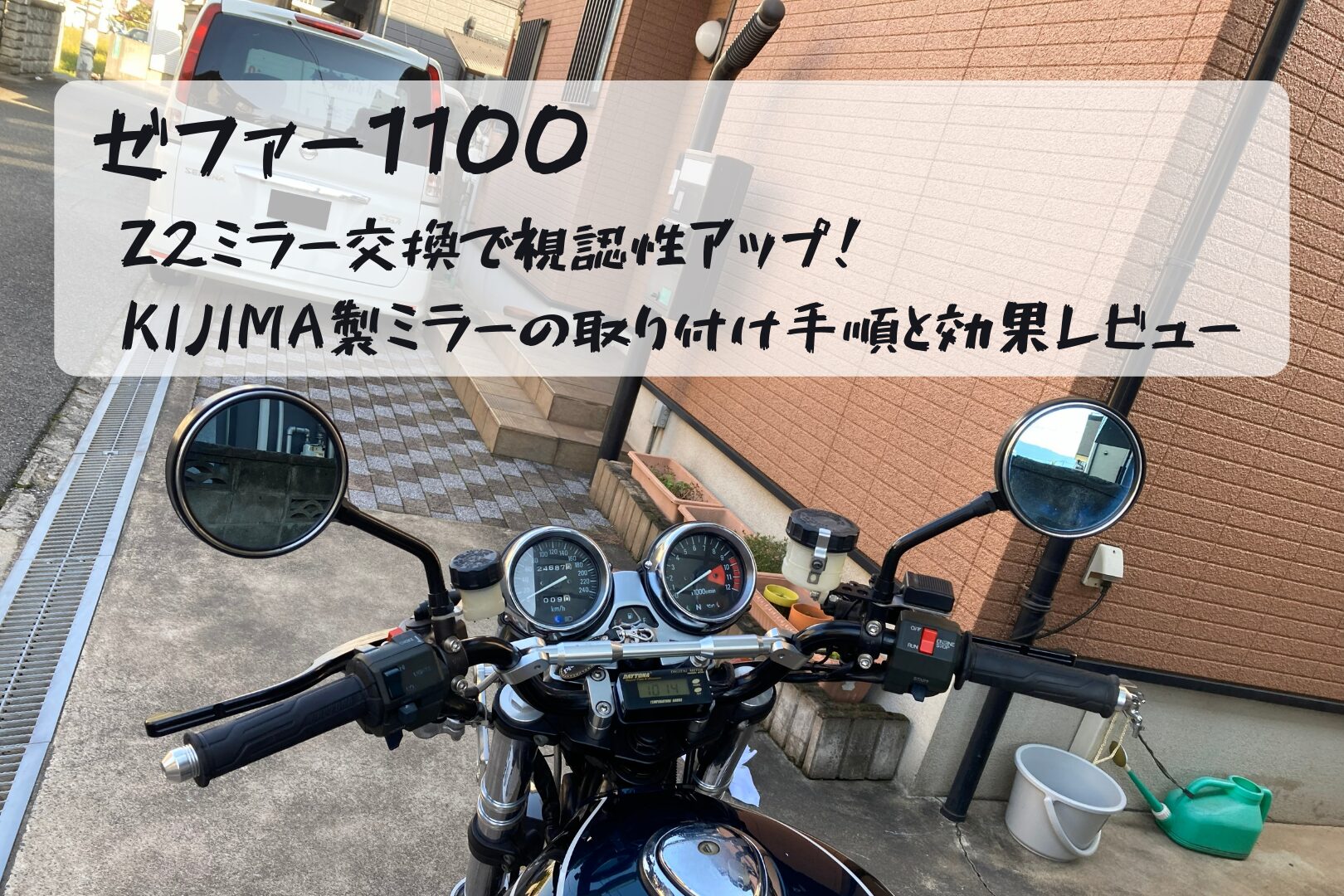 ゼファー1100に KIJIMA製Z2タイプミラー(ブラック×ブルーグラス) を取り付けた今回のカスタム。