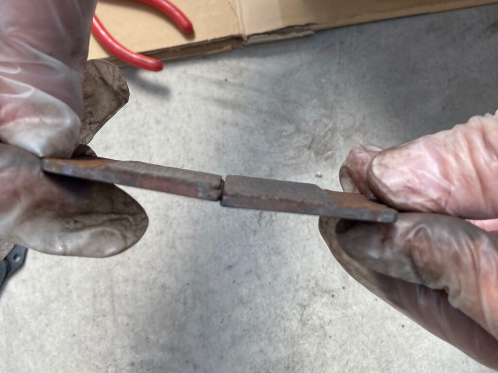 さらにパッドの状態をよく確認してみると、摩擦材の残量がかなり減っており、交換時期が近い状態でした。