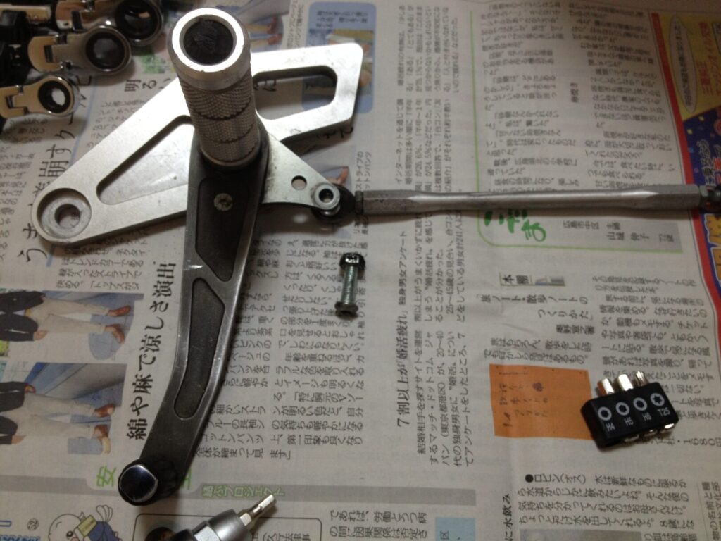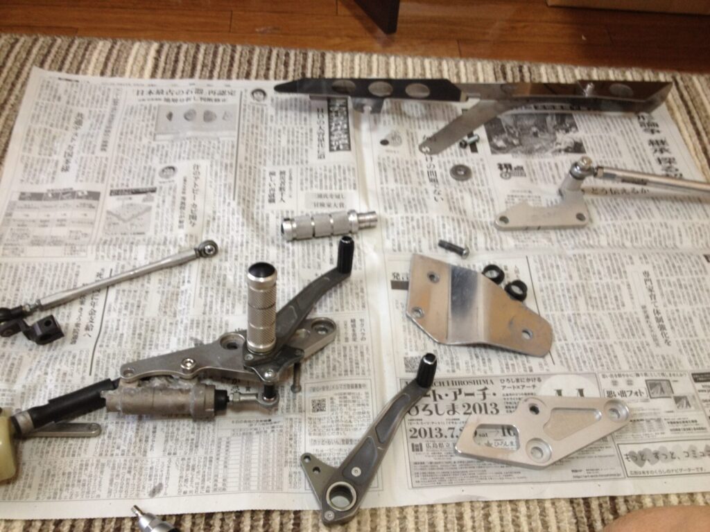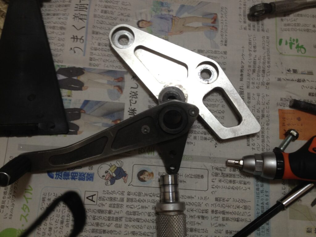 中古で入手したバックステップは、取り付け前に必ず分解し、各部の状態を確認します。
